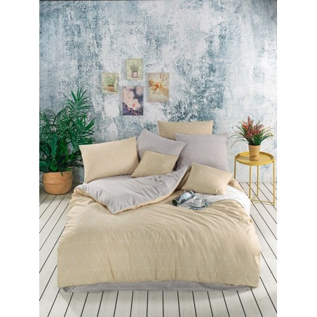 Transform your bedroom into a serene retreat with our stylish bedding set. Featuring a soft beige color scheme and subtle geometric patterns, this cozy duvet and layered pillows provide both comfort and elegance. Perfect for contemporary or minimalist decor, it enhances any space while ensuring warmth and inviting aesthetics for everyday use or special occasions.