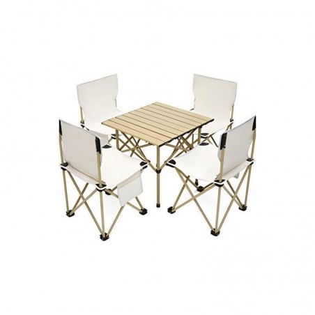 Discover the perfect outdoor dining set for your space! This compact, square table paired with four folding chairs offers a stylish and functional solution for small gatherings. Crafted from durable materials, it features a rustic wood finish and weather-resistant fabric, making it ideal for patios or camping. Enjoy casual meals outdoors with ease and convenience.
