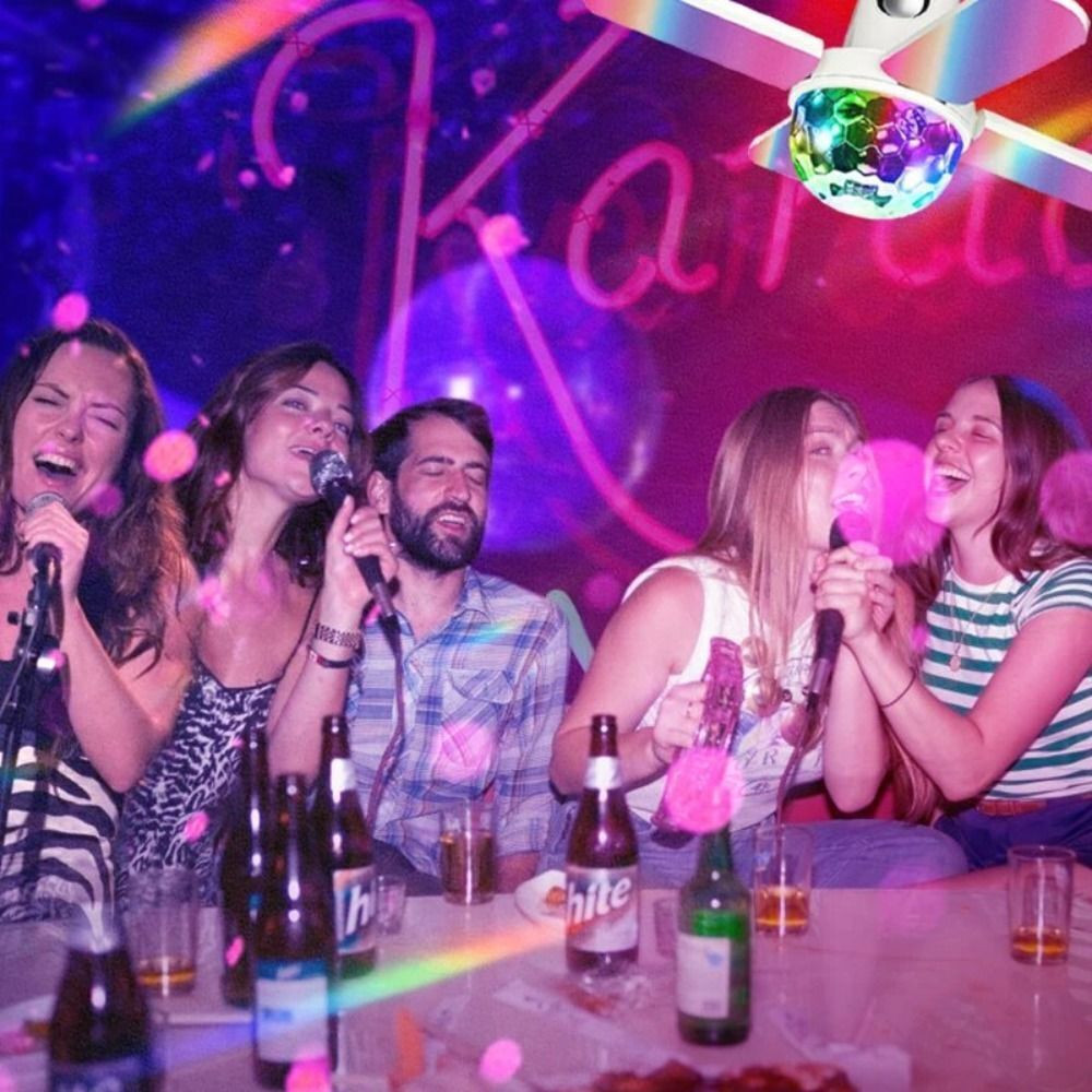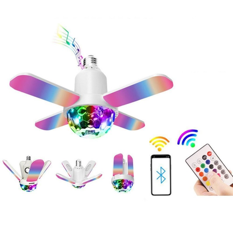 Transform your space with the Lampe musicale colorée à quatre feuilles, mini boule magique Bluetooth. This innovative lighting solution is designed to enhance any environment, whether it's a cozy living room or a lively party setting. Its compact design mimics a ceiling fan with four elegant leaf-like blades that transition from white to vibrant rainbow hues, creating an eye-catching centerpiece.