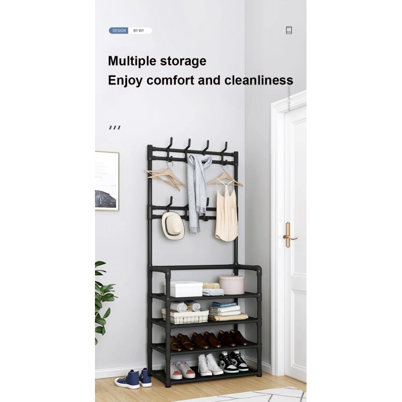Beneath the hooks lies an integrated shelving unit that boasts five open shelves specifically designed for shoe storage. This tiered design allows you to easily display and access various footwear styles—from casual sandals to elegant heels—keeping them organized and off the floor.