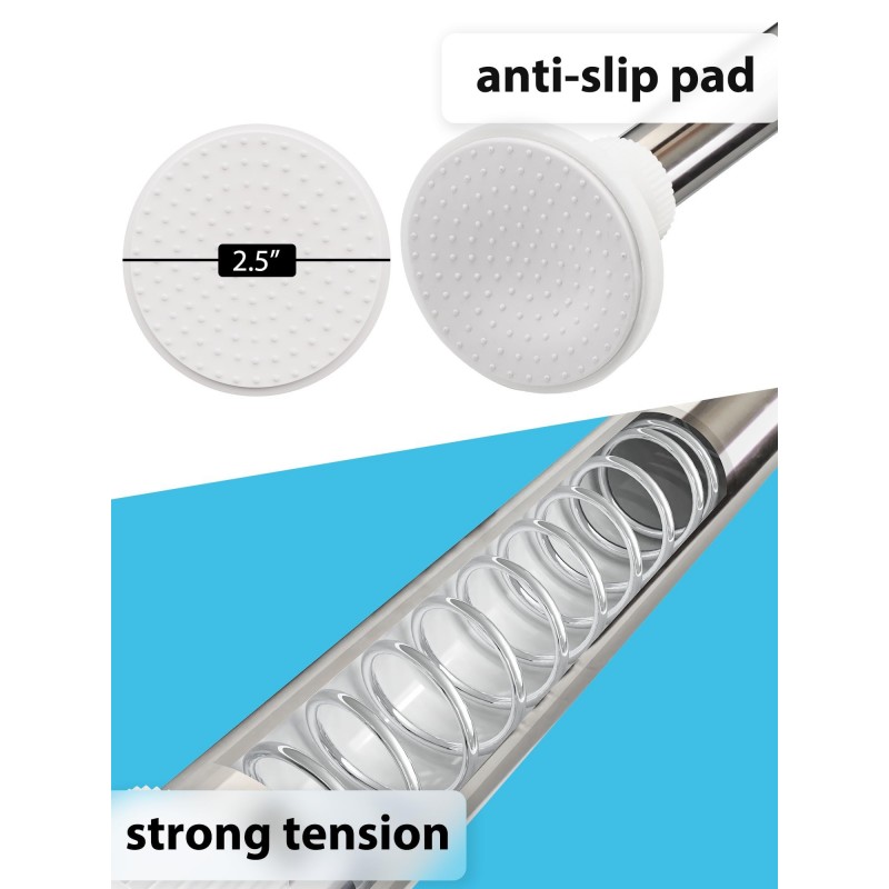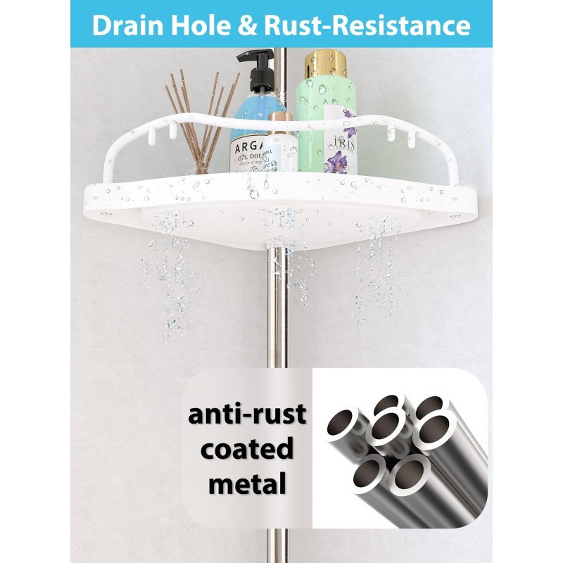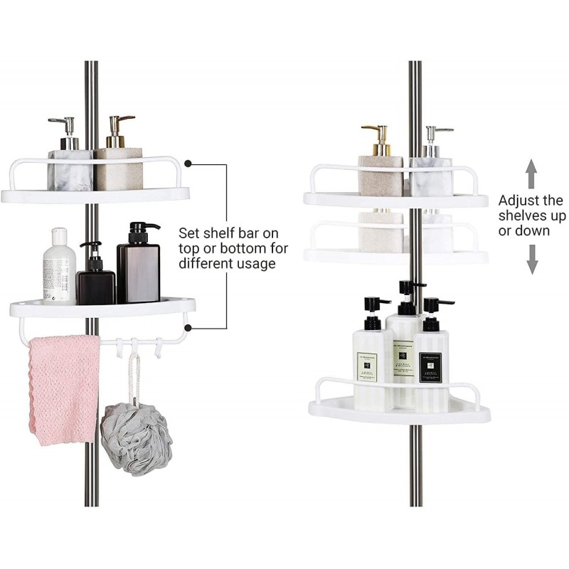 The unit features a robust stainless steel pole that ensures durability and rust resistance. With adjustable heights ranging from 3.3 to 9.8 feet, this caddy fits snugly into any corner without the need for drilling or permanent fixtures, thanks to its clever tension-mount design.