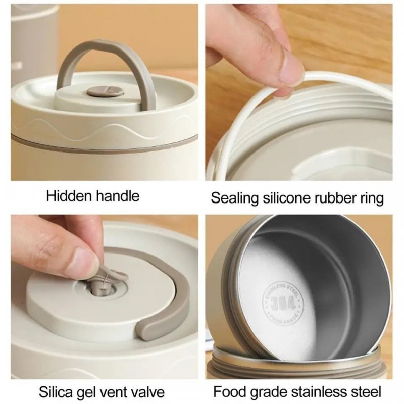 Discover the Portable Stainless Steel Lunch Box, the ideal accessory for those who want to combine practicality and style during their meals. Designed to keep your dishes hot or cold, this insulated box is made of double-walled stainless steel, ensuring excellent thermal insulation thanks to its air vacuum.