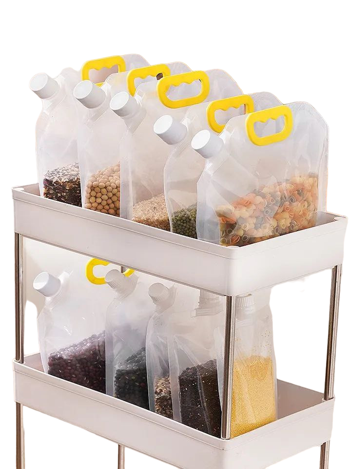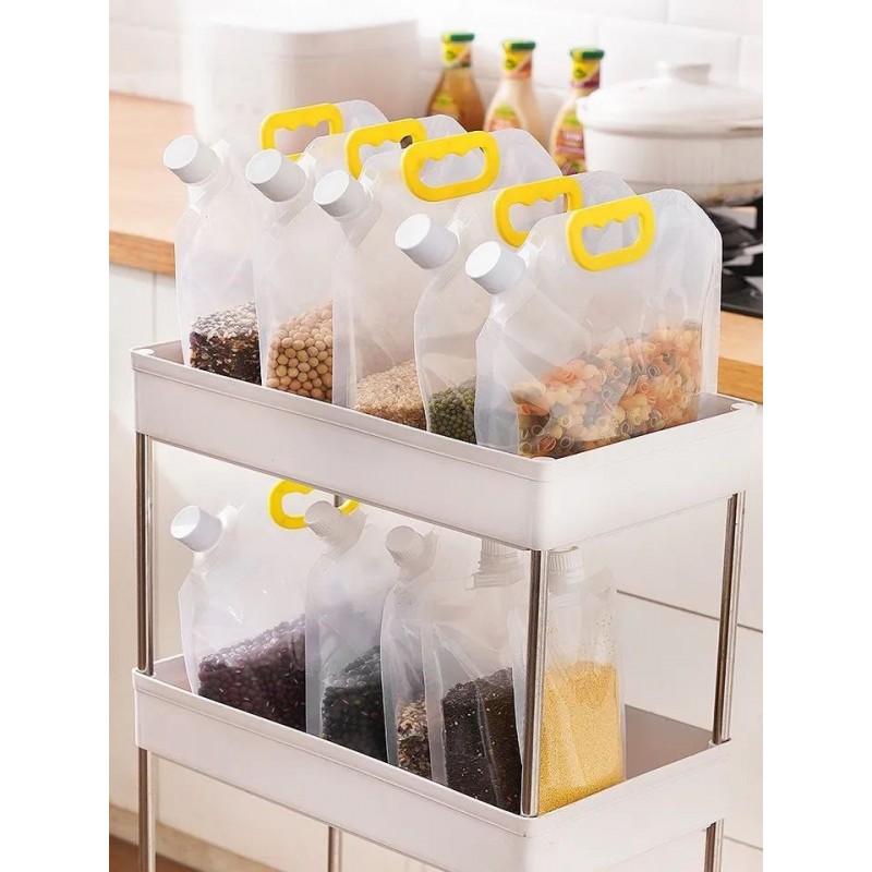 Crafted from durable plastic, these bags stand upright and are designed to maximize space in your pantry or kitchen cabinet. Their moderate capacity makes them suitable for bulk purchases of lentils, beans, rice, or pasta—ideal for those who love cooking with wholesome ingredients.