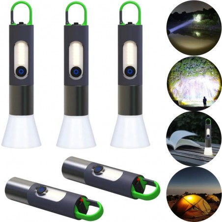 Discover the P50 Portable High-Lumen Flashlights, USB Rechargeable Keychain, the ideal tool for all your lighting needs. With an impressive power of 1500 lumens, these flashlights provide exceptional brightness, perfect for outdoor activities like camping or hiking.