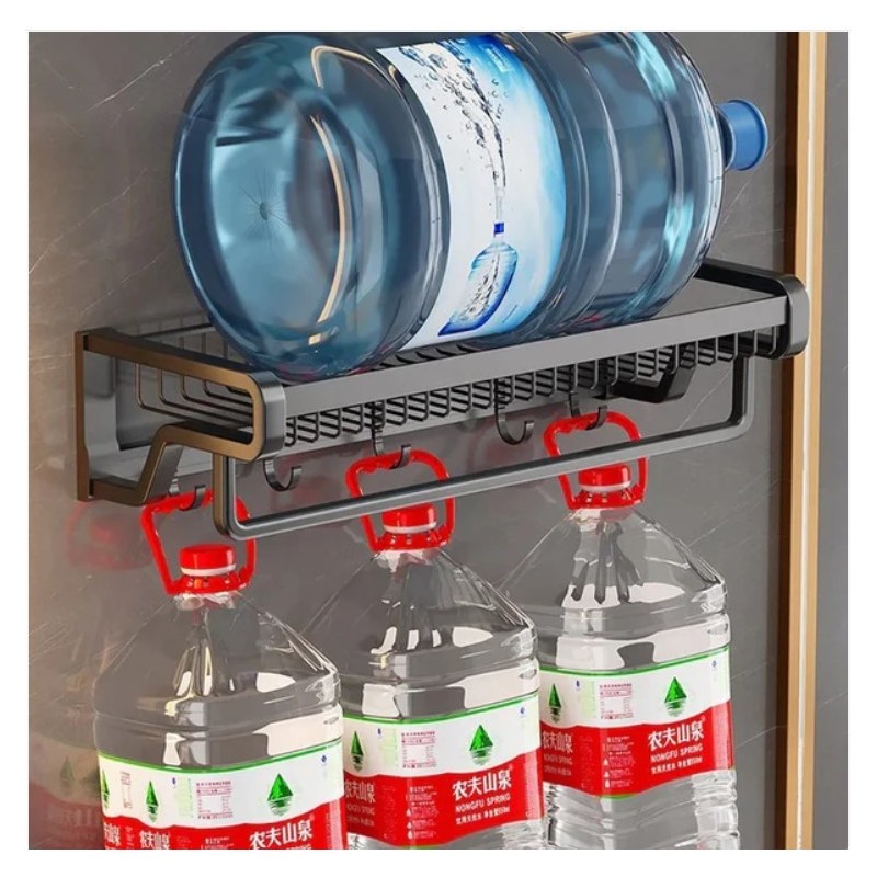 Mesh Basket Bathroom Towel Rack No Space Aluminum Black