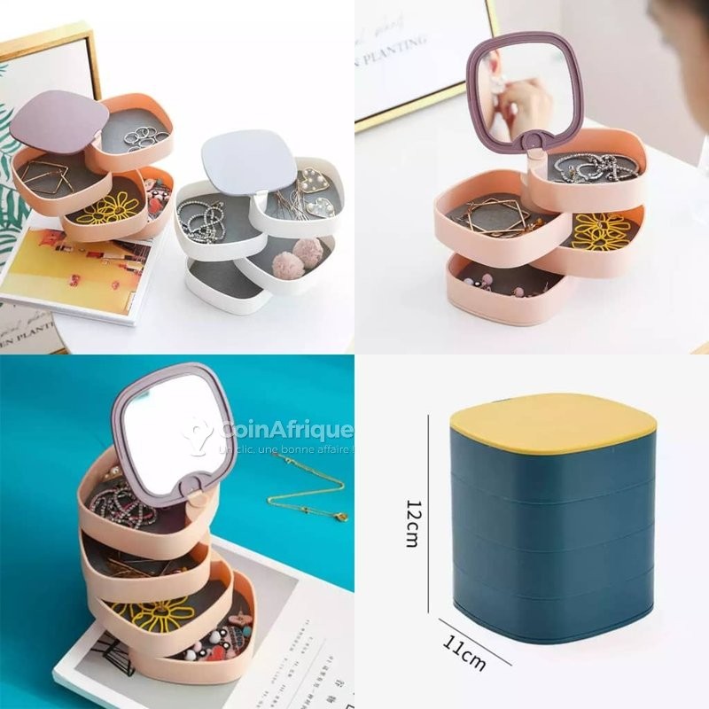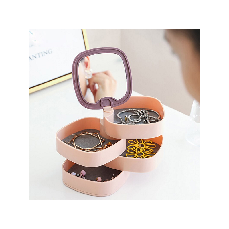 Discover the perfect blend of style and functionality with our dual-tiered jewelry storage organizer. Featuring a chic design in soft pastels, this organizer includes an integrated mirror for easy accessorizing. With its modular structure, it efficiently stores rings, bracelets, and earrings while enhancing your vanity or dresser. Keep your jewelry tidy and accessible in one elegant solution.