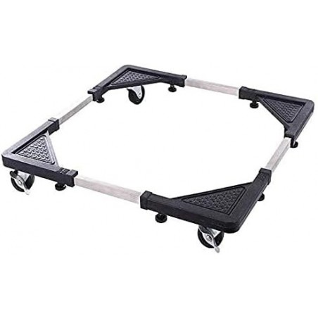 The stand features a robust aluminum frame, ensuring both strength and lightweight maneuverability. Its adjustable components allow it to fit various appliance sizes, accommodating everything from refrigerators to washing machines with ease. The four triangular brackets at each corner provide exceptional stability, ensuring that your appliances remain securely in place.
