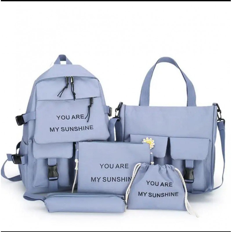 Discover our stylish black bag collection, perfect for travel or everyday use. This versatile set includes a backpack, shoulder bag, pouch, drawstring bag, and pencil case. Each piece features the uplifting phrase YOU ARE MY SUNSHINE, crafted from durable materials for long-lasting performance. Elevate your accessory game with this cohesive and functional ensemble.