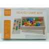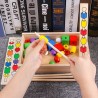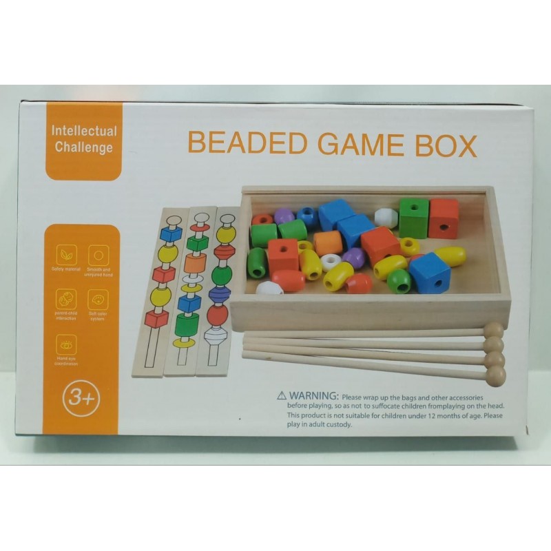 The rectangular wooden base tray provides a sturdy foundation for endless creative possibilities. Crafted from smooth wood with a natural finish, it ensures durability while maintaining an inviting aesthetic. The standout feature of this toy is its assortment of colorful beads that can be threaded onto three vertical rods.