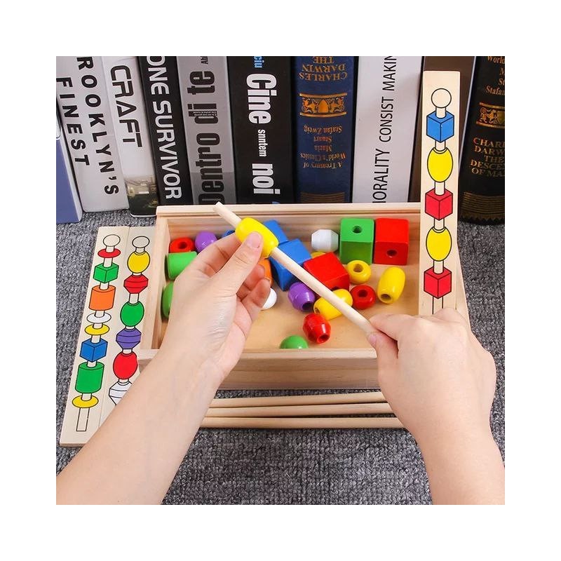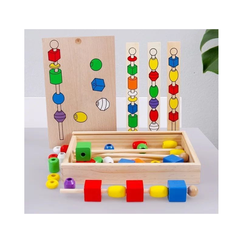 This multifunctional toy serves multiple purposes: it helps kids learn about colors and shapes while practicing fine motor skills through threading activities. Additionally, it encourages imaginative play by allowing children to design their own creations.