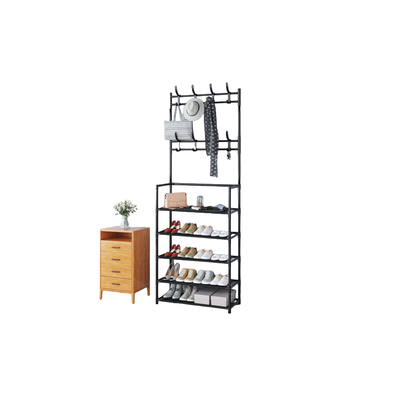 Discover the perfect blend of style and functionality with our multi-functional shoe rack. Featuring a sleek matte black metal frame and four sturdy shelves, it organizes your footwear while enhancing your decor. Ideal for entryways or closets, this versatile piece also offers additional storage space for bags and accessories, making it a must-have for any home.