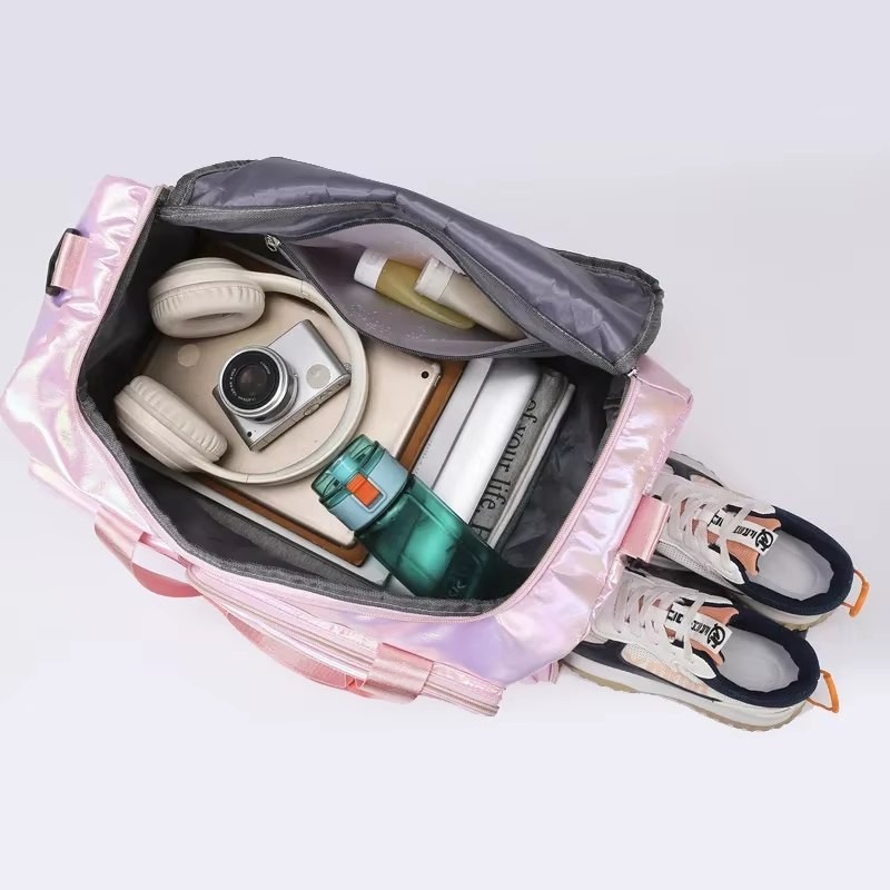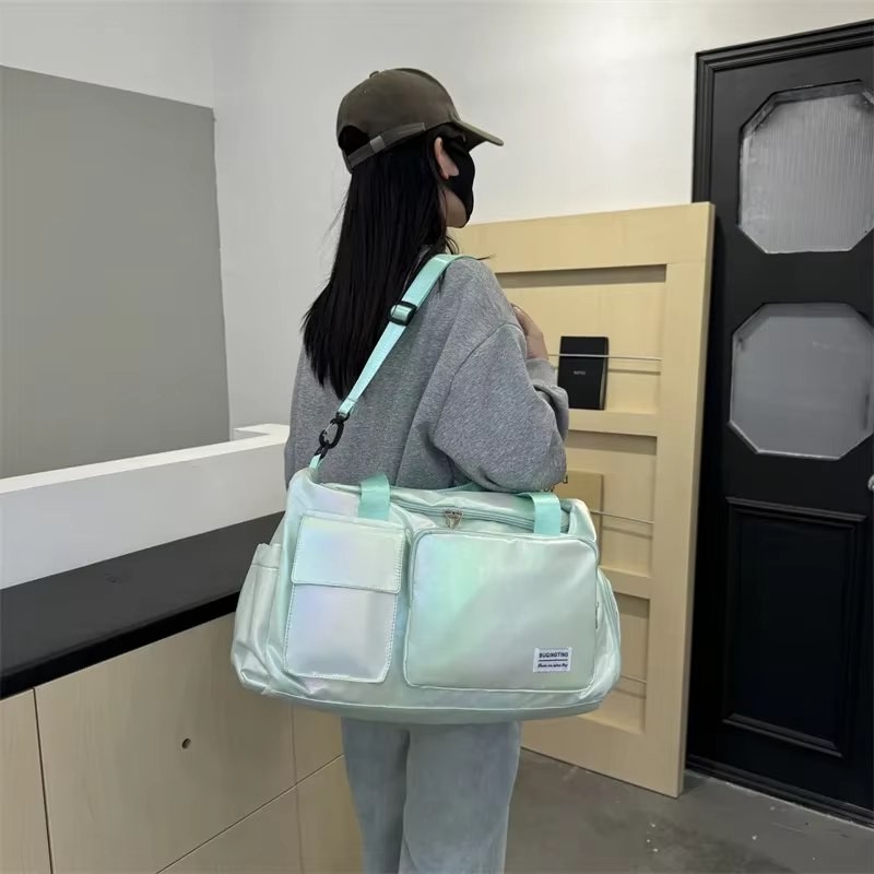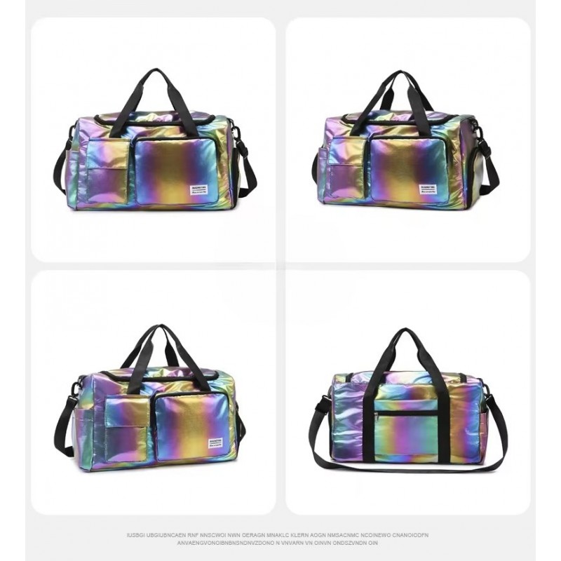 Discover the perfect blend of style and functionality with our iridescent duffel bag. Featuring a lightweight, durable design in stunning mint green, this medium-sized bag is ideal for gym visits or weekend getaways. With multiple pockets and adjustable straps, it offers both convenience and versatility for the modern traveler.