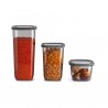 Set of 3 plastic containers with lids for rice, flour, and cereals