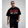 The predominantly black design serves as a versatile canvas for its striking graphic elements. Featuring the bold word "OPEN" in large white letters against a vibrant red background, this T-shirt captures attention effortlessly. The additional phrases "YOUR MIND" and "FUTURE" complement the main graphic, creating an eye-catching visual that resonates with modern urban culture.