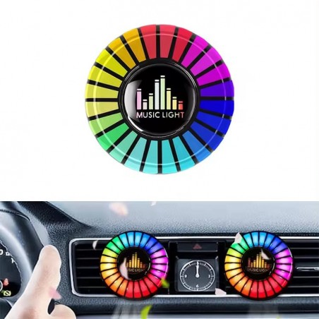 Le Car LED Air Freshener Light RGB présente un design circulaire élégant qui s'intègre parfaitement dans les bouches d'aération standard des voitures. Son système d'éclairage dynamique RGB réagit à la musique, créant une atmosphère engageante qui se synchronise avec vos morceaux préférés. Imaginez-vous en train de rouler sur la route pendant que des lumières colorées dansent en harmonie avec le rythme de votre playlist !