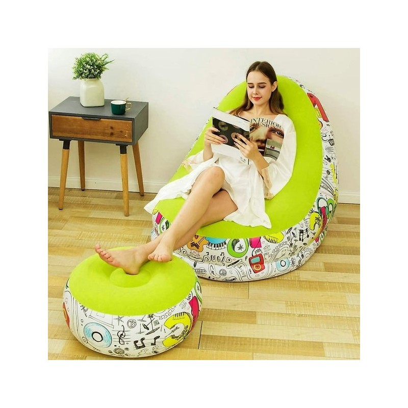 Fauteuil gonflable de loisirs portable avec repose-pieds et tabouret