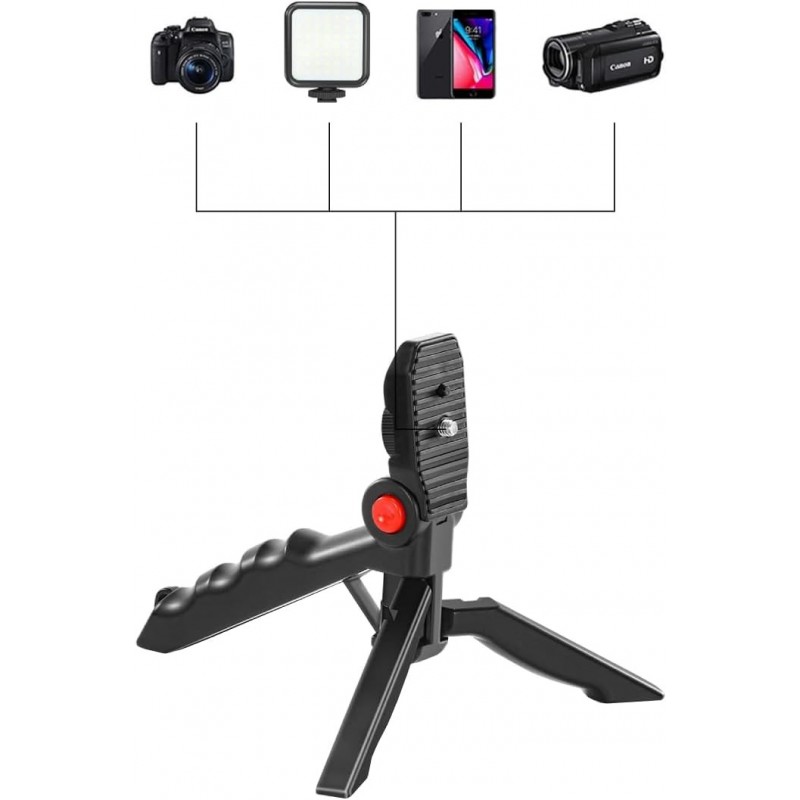 Le mini trépied compact, mesurant seulement 10 cm, fournit une base stable pour votre smartphone, ce qui le rend parfait pour les prises de vue en déplacement. Ses pieds en caoutchouc assurent une prise ferme sur diverses surfaces, vous permettant de capturer des séquences fluides où que vous soyez. Le support pour smartphone réglable s'adapte en toute sécurité à différentes tailles de téléphone, vous permettant de vous concentrer sur la création sans vous soucier de votre appareil qui glisse.
