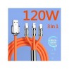 Découvrez le câble de charge rapide 3-en-1 ultime, conçu pour la polyvalence avec des connecteurs USB Type-C, Micro USB et Lightning. Profitez de capacités de charge rapide allant jusqu'à 120W, garantissant que vos appareils se chargent rapidement. Fabriqué à partir de matériaux durables et arborant une couleur orange vive, ce câble est parfait pour les utilisateurs en déplacement qui ont besoin d'une performance fiable.
