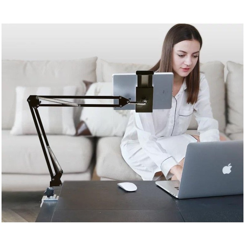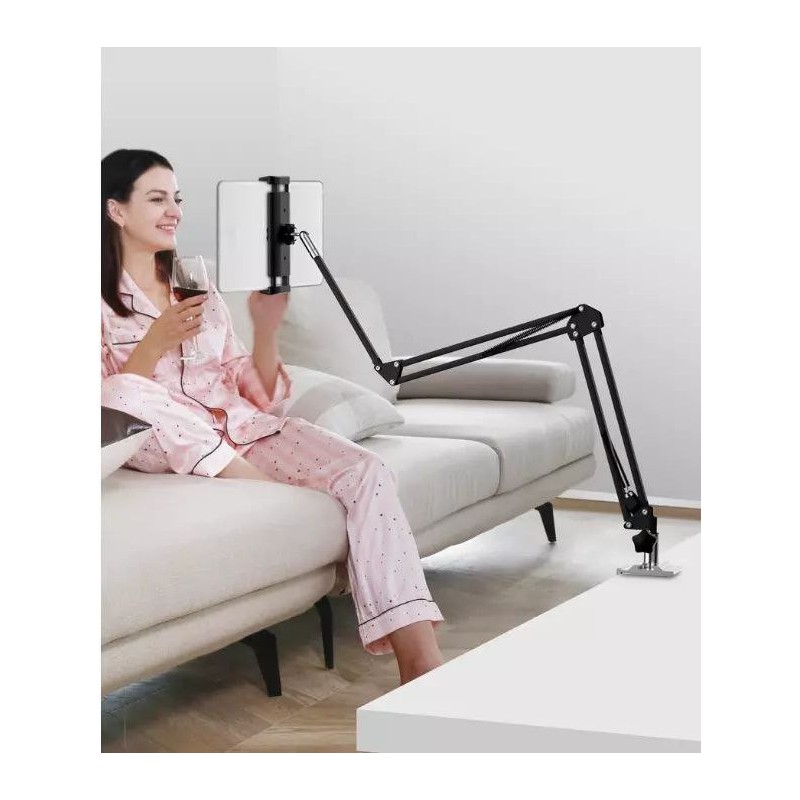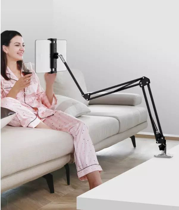 Avec des dimensions optimales, ce support est capable d'accueillir divers appareils, qu'il s'agisse de votre smartphone ou de votre tablette. Grâce à son système d'ajustement innovant, il s'adapte facilement à la taille de votre appareil tout en offrant un maintien sécurisé. Les bras télescopiques permettent une fixation stable, évitant ainsi tout glissement pendant vos appels vidéo ou sessions de streaming.
