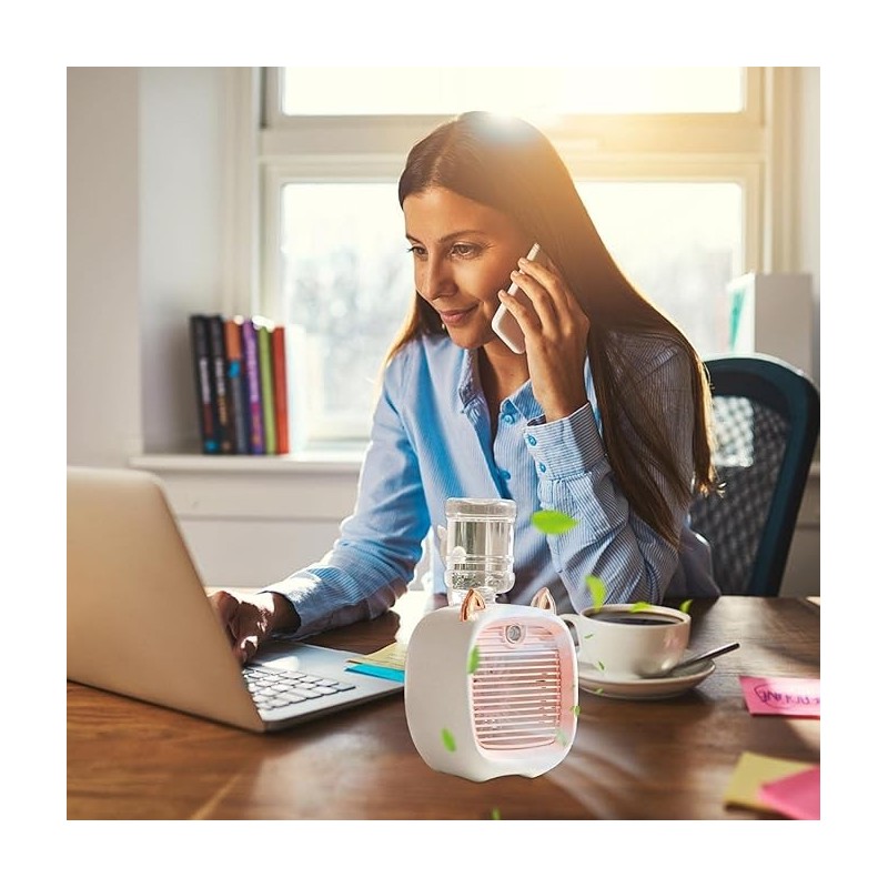Introducing the Mini ventilateur de refroidissement personnel avec pulvérisation d'eau, a perfect blend of functionality and style for your home or office. This innovative cooling solution is designed to provide instant relief from heat, making it an essential companion during warm days.