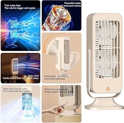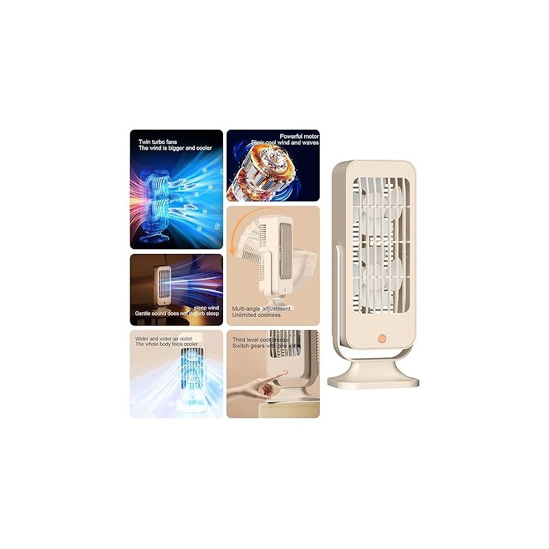 Le design compact de ce ventilateur de refroidissement portable lui permet de s'intégrer parfaitement sur des bureaux ou de petites tables, ce qui en fait un choix idéal pour un usage personnel. Sa construction légère garantit une portabilité facile, vous permettant de le déplacer partout où vous avez besoin de cette touche de fraîcheur supplémentaire. La couleur beige ou crème clair élégante complète divers styles d'intérieur, ajoutant une touche contemporaine à votre espace.