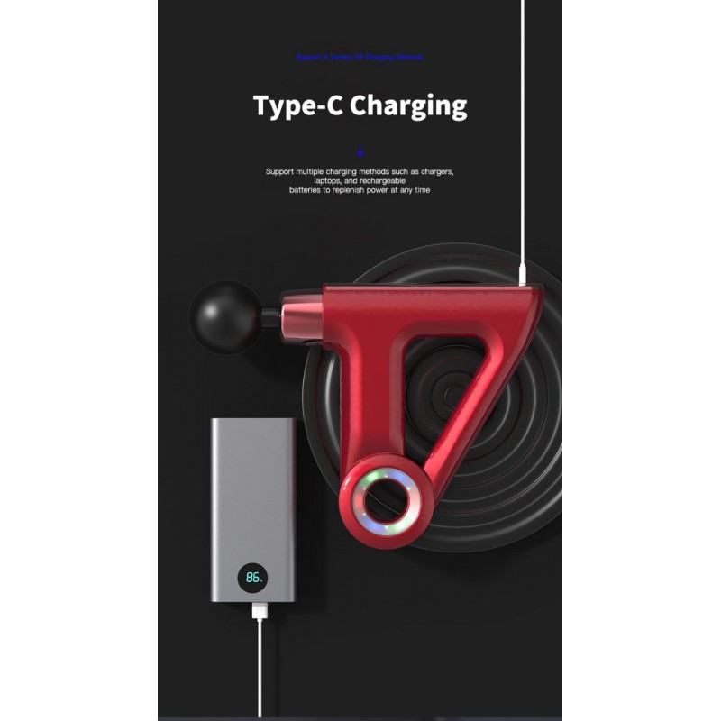 La thérapie par percussion ciblée est facilitée grâce à sa tête ronde spécialement conçue. Cette caractéristique vous permet de vous concentrer sur des groupes musculaires spécifiques, offrant un soulagement des tissus profonds qui favorise une récupération plus rapide et une meilleure circulation. L'interface de contrôle intuitive comprend un anneau lumineux LED multicolore qui indique l'état de la batterie et les niveaux d'intensité, vous tenant informé pendant que vous profitez de votre expérience de massage.