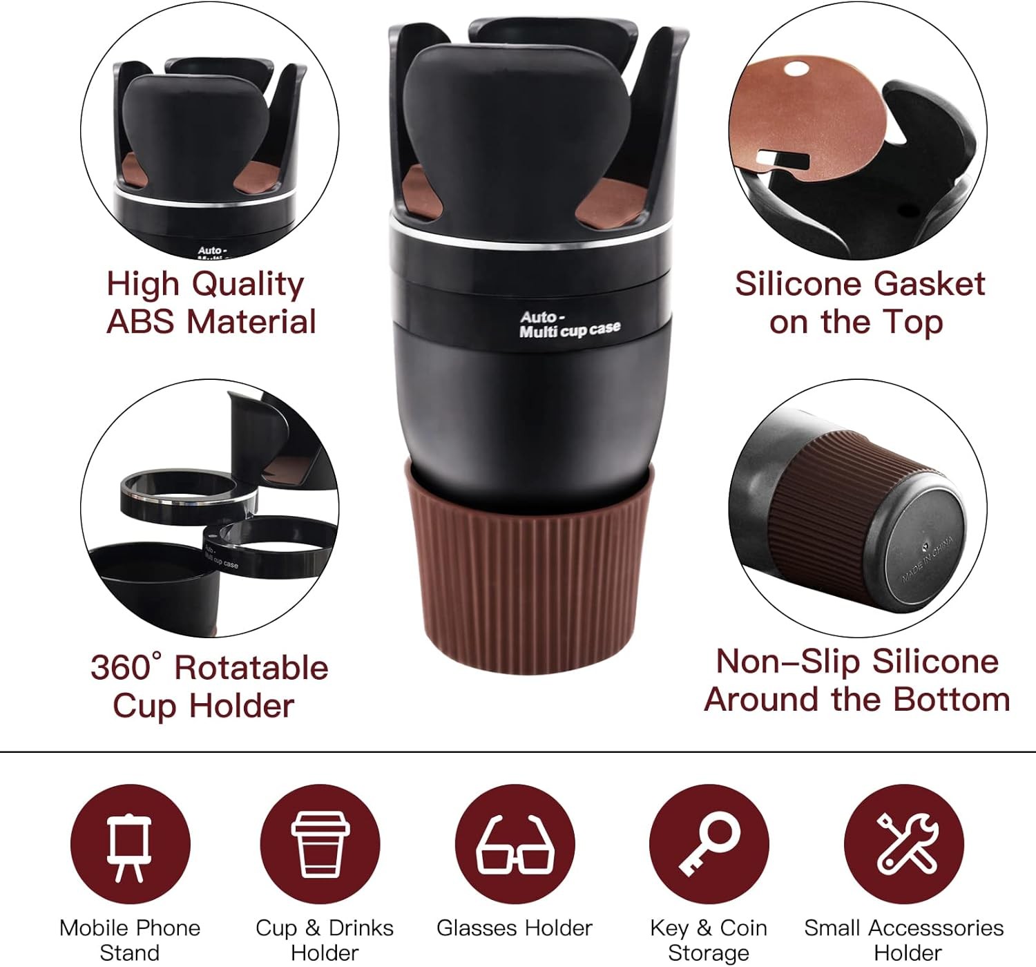 Le design 4-en-1 vous permet d'accueillir différentes tailles de contenants de boisson, ce qui le rend parfait pour tout, des tasses à café aux grandes bouteilles d'eau. Ses caractéristiques ajustables garantissent que vous pouvez personnaliser l'ajustement selon vos besoins, offrant une polyvalence inégalée. Plus besoin de s'inquiéter des éclaboussures ou des boissons mal placées : ce porte-gobelet s'étend et se contracte sans effort.