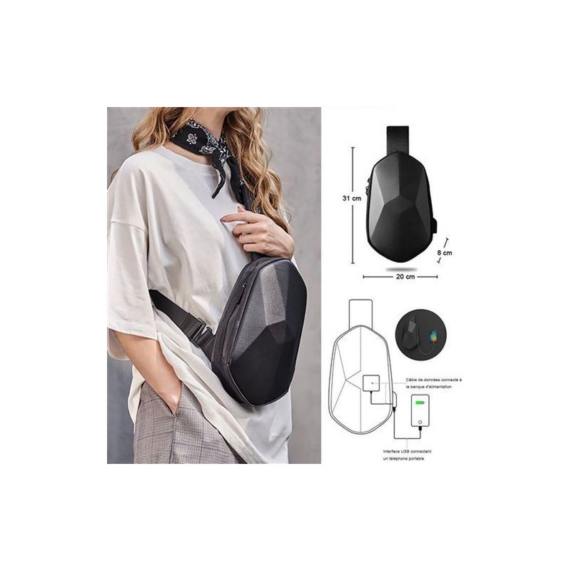 Découvrez le mélange parfait de style et de fonctionnalité avec notre moderne sac bandoulière. Doté d'un design géométrique élégant, de matériaux synthétiques durables et d'un port de charge USB intégré, cet accessoire compact est idéal pour les trajets quotidiens ou les voyages. Adoptez la commodité mains libres tout en mettant en valeur votre sens de la mode contemporaine avec ce sac bandoulière noir polyvalent.