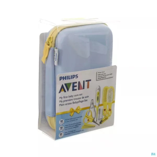 Découvrez le set de soins pour bébé Philips Avent My First, conçu pour les nouveaux parents à la recherche d'outils de toilettage essentiels. Ce boîtier de transport compact et bleu clair comprend un thermomètre pour bébé, des coupe-ongles et des brosses douces. Parfait pour la maison ou les voyages, il garantit que tous les besoins de soin de votre bébé sont organisés et accessibles. Un cadeau attentionné pour tout aidant !