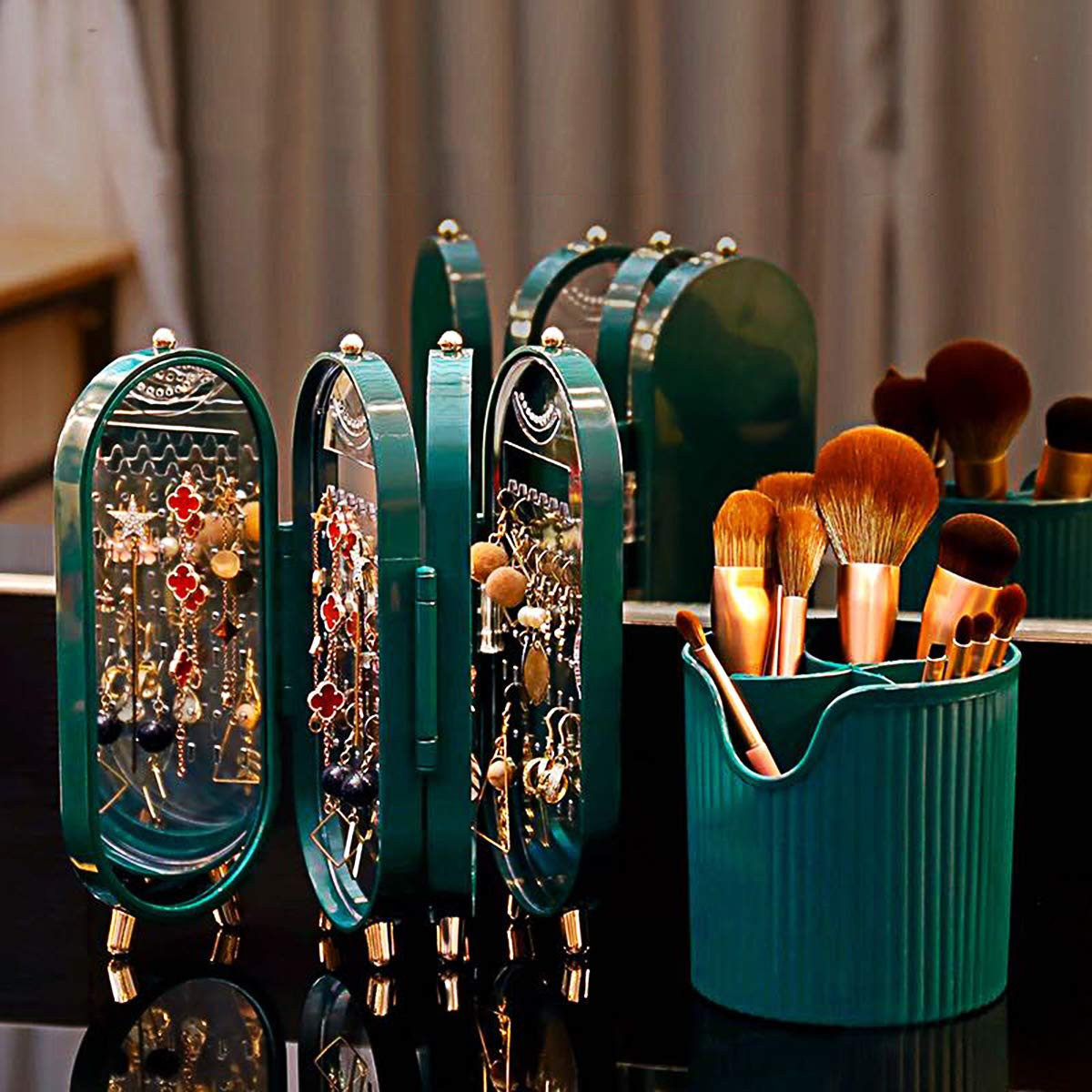 Découvrez la Boîte à bijoux avec miroir, collier paravent pliable 4 portes, un accessoire élégant pour organiser vos bijoux. Avec son design moderne en vert émeraude et ses quatre portes transparentes, elle offre une visibilité optimale. Fabriquée en matériaux durables, elle protège vos trésors tout en ajoutant une touche de sophistication à votre espace.
