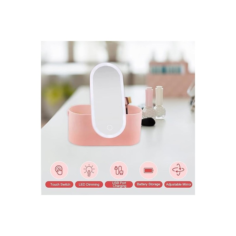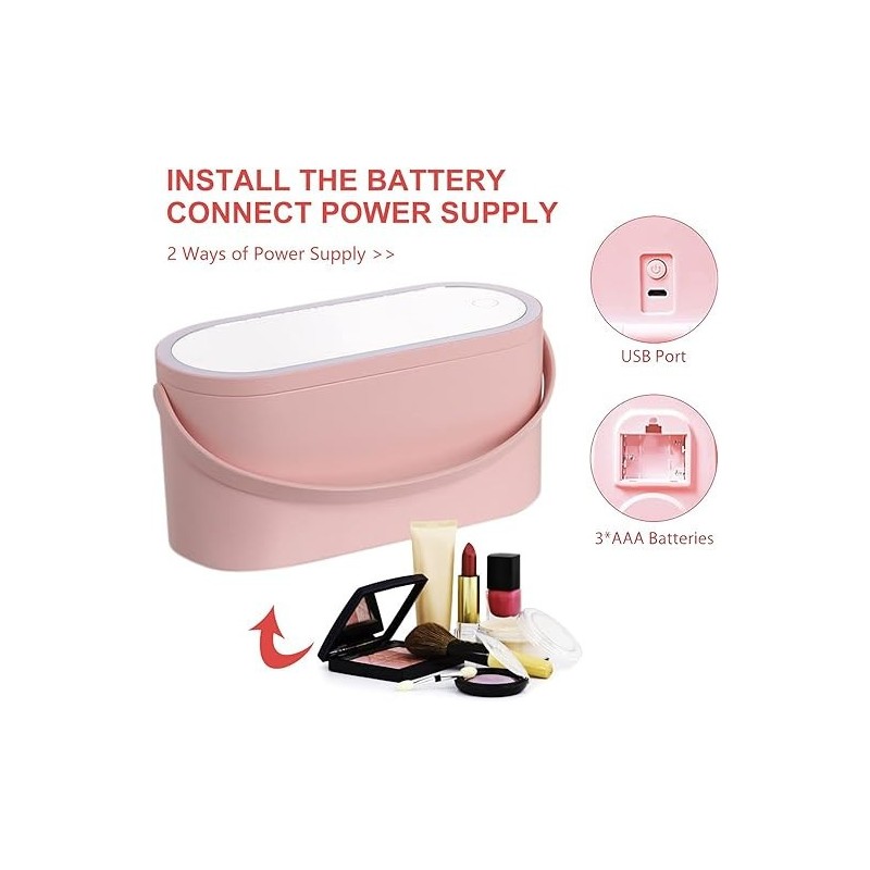 Équipée d'un miroir orienté verticalement, cette boîte à cosmétiques rend les retouches rapides sans effort. Le bouton d'alimentation circulaire en bas suggère une fonction d'illumination, garantissant un éclairage optimal lors de l'application. Fini les luttes dans une lumière tamisée : obtenez des looks impeccables à chaque fois !