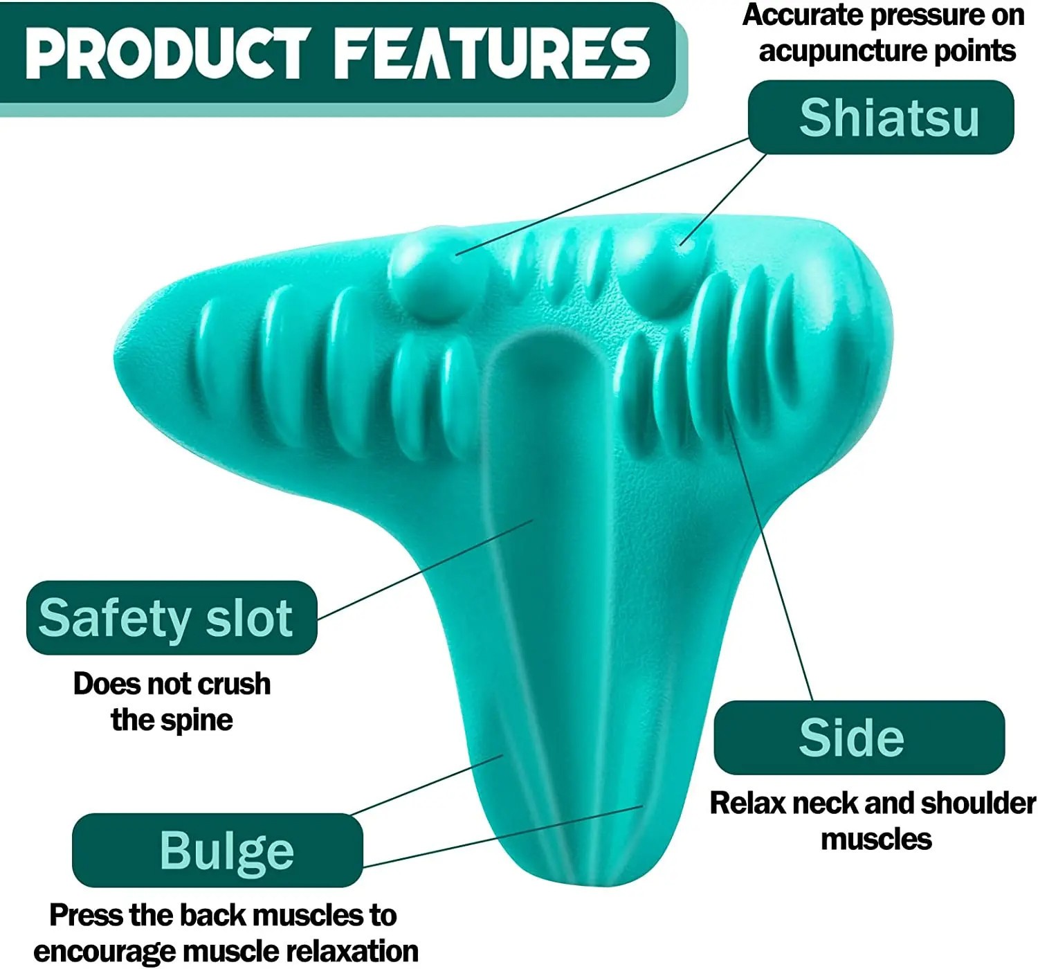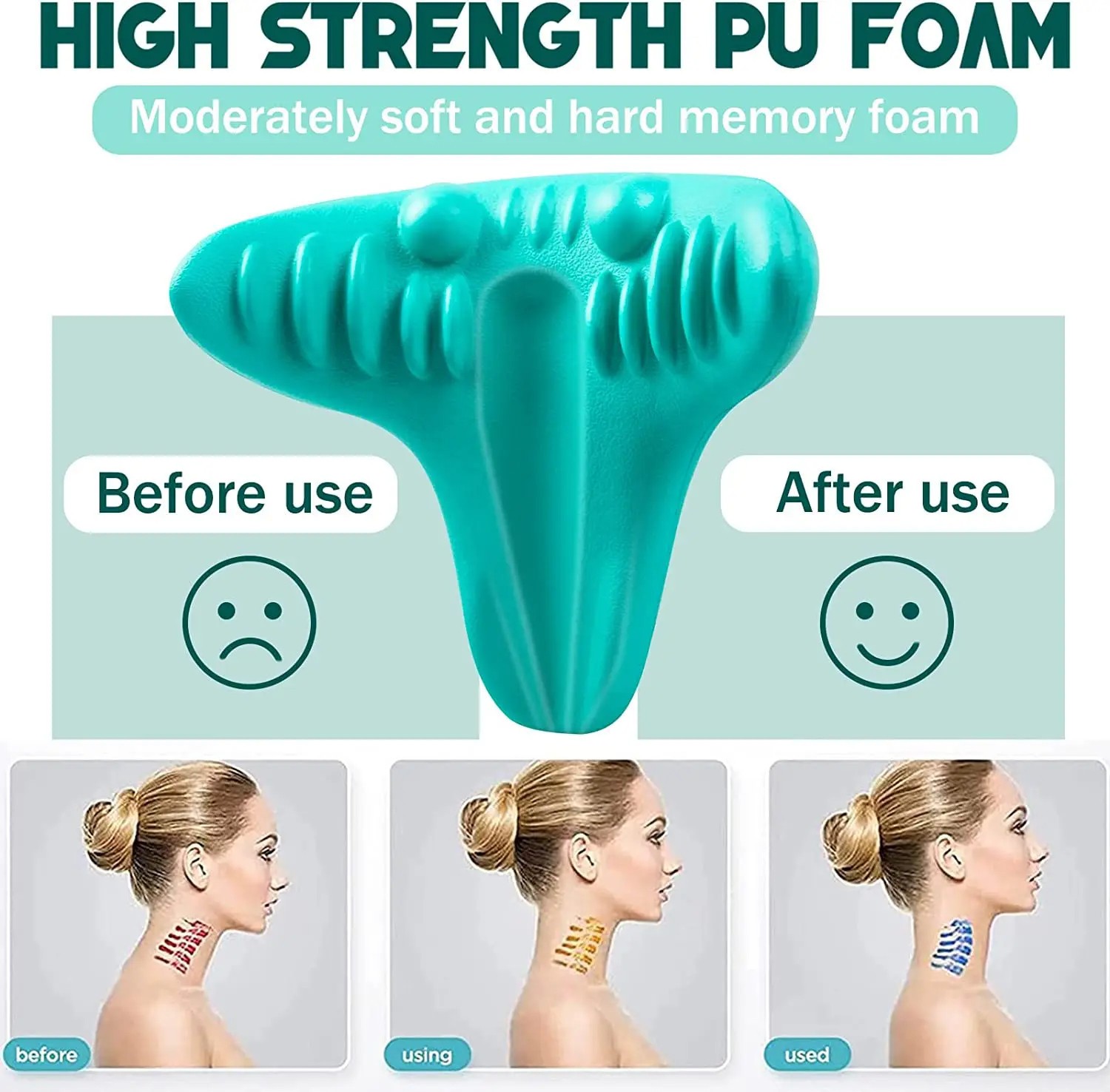Fabriqué à partir d'une mousse douce et durable, cet oreiller assure une expérience agréable tout en maintenant un équilibre parfait entre fermeté et douceur. Sa surface lisse est agrémentée d'éléments texturés tels que des nodules arrondis qui ciblent efficacement les points de pression dans la région cervicale. Cela favorise une relaxation profonde et aide à réduire les douleurs causées par le stress ou une mauvaise posture.