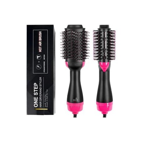 Découvrez un coiffage sans effort avec notre brosse à air chaud innovante. Conçue pour une double fonctionnalité, elle sèche et coiffe vos cheveux en une seule étape facile. Doté d'une poignée noire élégante avec des accents roses vifs, cet outil dispose de réglages de chaleur ajustables et d'une prise ergonomique. Parfait pour obtenir des coiffures lisses et volumineuses ou des boucles douces rapidement et efficacement.