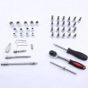 Le côté droit de la boîte de rangement présente une gamme de embouts de tournevis, y compris des types Phillips et plats fabriqués en acier durci pour une longévité maximale. Le design innovant permet des changements rapides entre les embouts grâce à la poignée à cliquet de style pistolet ergonomique. Avec son mécanisme à cliquet à 72 dents, vous pouvez profiter d'un fonctionnement plus fluide dans des espaces confinés.