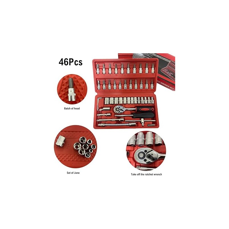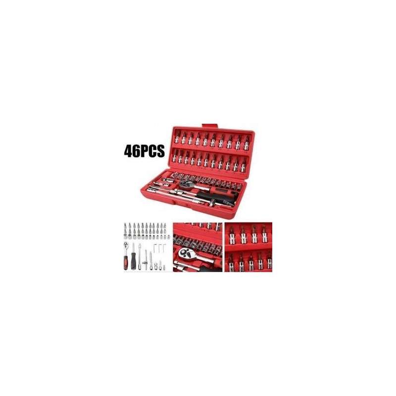 Découvrez la polyvalence du Jeu De Douilles à Embouts/De Clé à Douille, Wooauto 46 Pcs 1/4" Jeu De Douilles avec Boîte De Rangement Clé à Douille Et Jeu. Cet ensemble d'outils complet comprend des douilles plaquées chrome, une poignée à cliquet et divers embouts de tournevis, tous organisés pour un accès facile. Parfait pour les réparations automobiles et les projets domestiques, il allie durabilité et commodité.