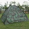 Le motif camouflage saisissant présente différentes nuances de vert, de brun et de beige — idéal pour les amateurs de plein air et les chasseurs souhaitant rester discrets dans la nature. La structure légère est constituée d'arceaux flexibles en fibre de verre ou en aluminium, offrant stabilité sans ajouter de poids inutile.