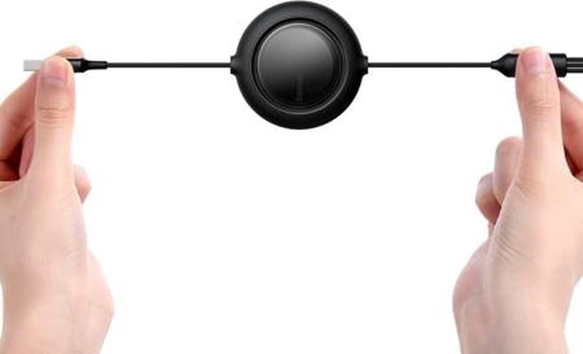 Câble USB Baseus / 3 en 1 / 1,2 m se distingue par son design élégant et moderne. Le hub noir avec finition brillante abrite trois câbles qui se déploient facilement grâce à leur courbure ergonomique. Les connecteurs sont dotés d'icônes claires pour faciliter l'identification des types de connexion.