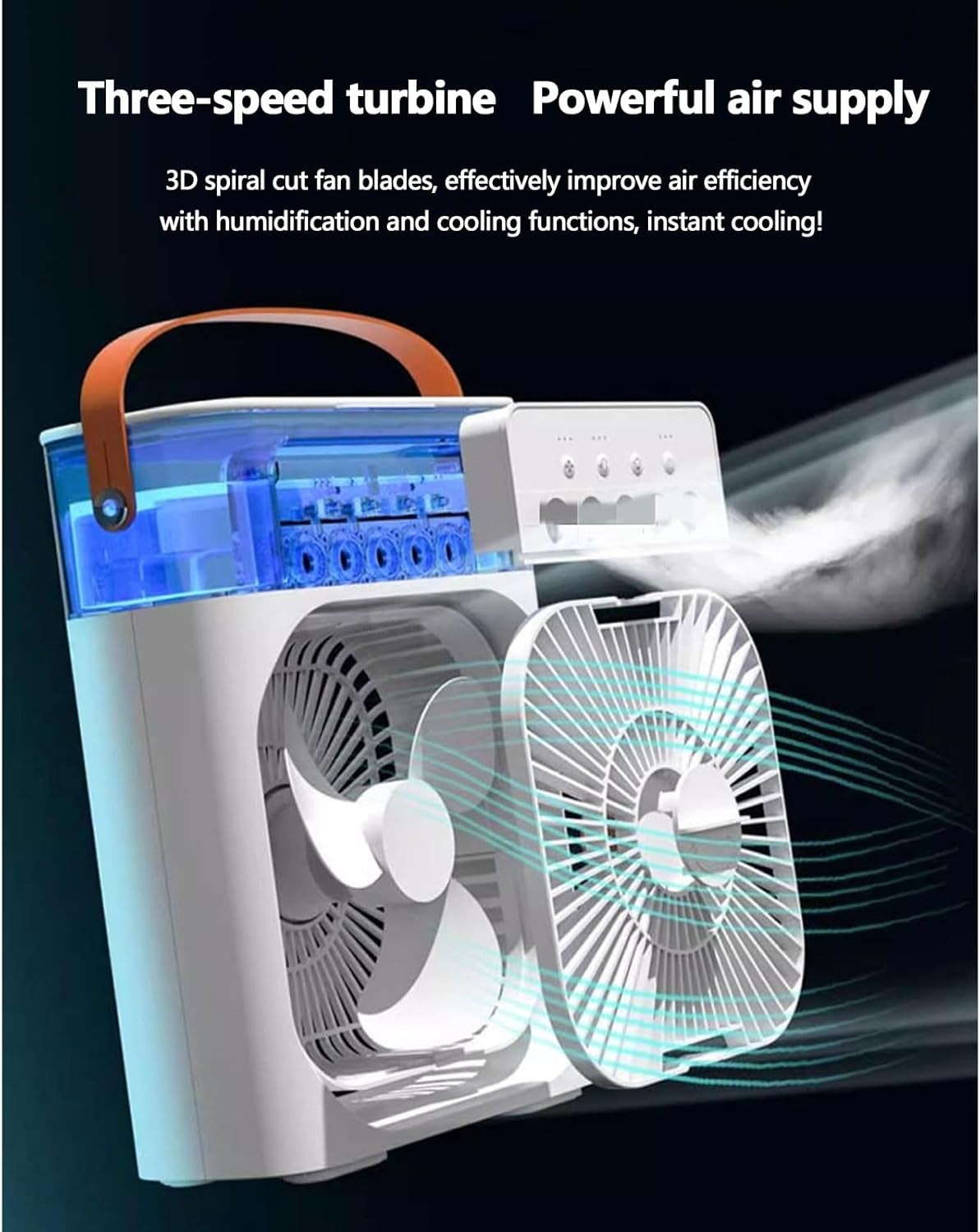 Restez au frais et à l'aise avec le Mini Fan Air Conditioning Cooler. Ce petit ventilateur de bureau USB dispose de 5 trous pour une humidification efficace et offre 3 vitesses de vent, parfait pour une utilisation intérieure et extérieure. Son design portable le rend idéal pour tout espace, garantissant que vous profitiez d'un flux d'air rafraîchissant où que vous alliez.
