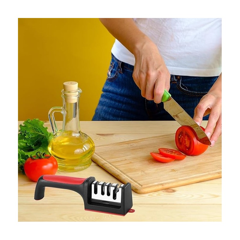 L'aiguiseur de couteaux adopte un corps en plastique ABS et une rainure de lame en acier au tungstène, en céramique de haute dureté, qui est durable et a toujours l'air et s'utilise comme neuf. Contrairement aux pierres à aiguiser, les affûteurs manuels durent plus longtemps et peuvent résister au stress de l'affûtage.