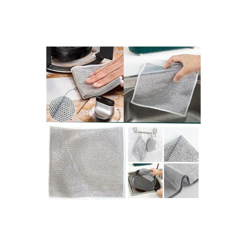Découvrez le chiffon de nettoyage de cuisine ultime, fabriqué en maille métallique durable pour un grattage efficace sans endommager les surfaces. Son design polyvalent le rend parfait pour s'attaquer à la saleté tenace sur les vaisselles, les éviers, et même les fruits et légumes. Découvrez une puissance de nettoyage supérieure avec cet outil essentiel, garantissant que votre cuisine reste impeccable et hygiénique.