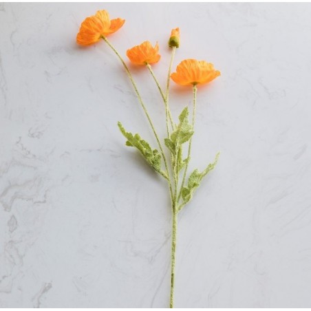 Présentation de notre magnifique tige de fleur artificielle, avec des fleurs vibrantes ressemblant à des coquelicots orange qui rehaussent sans effort tout espace décoratif. Avec plusieurs pétales légèrement froncés, ces fleurs présentent un aspect naturaliste qui apporte de la vie à votre maison ou bureau.