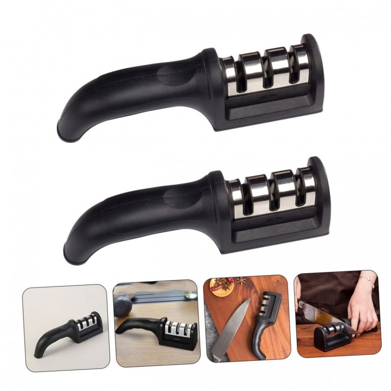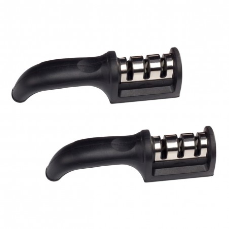 L'ensemble comprend deux outils d'affûtage, chacun fabriqué avec une poignée ergonomique qui offre une prise en main confortable. Le design noir élégant ajoute non seulement une touche d'élégance à votre cuisine, mais assure également durabilité et fonctionnalité. Fabriquées en plastique de haute qualité et antidérapant, les poignées sont faciles à tenir même lors d'une utilisation prolongée.