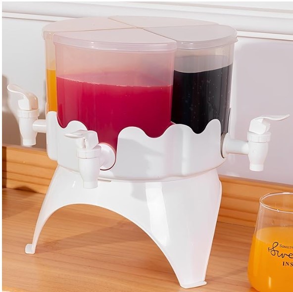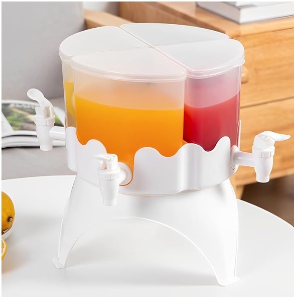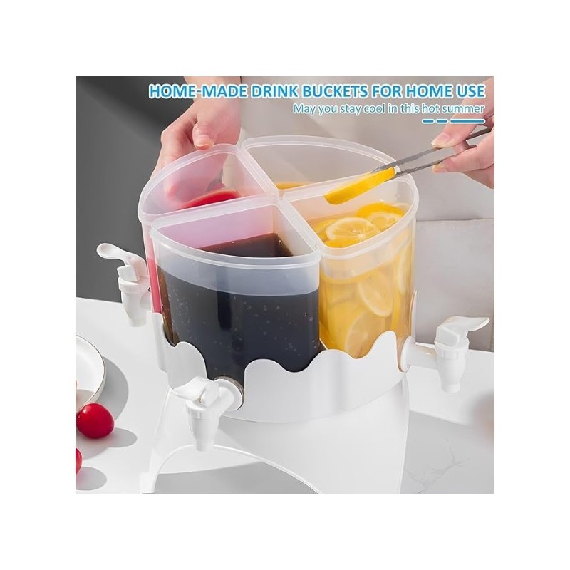 - [Conception amovible] Ce distributeur de boissons est composé par 4 bouilloires froides formant la conception du compartiment.Chaque bouilloire froide est amovible pour une utilisation séparée et indépendante.De plus, la conception du compartiment est la réduction de l'espace et bien l'organisation de garder le comptoir rangé.