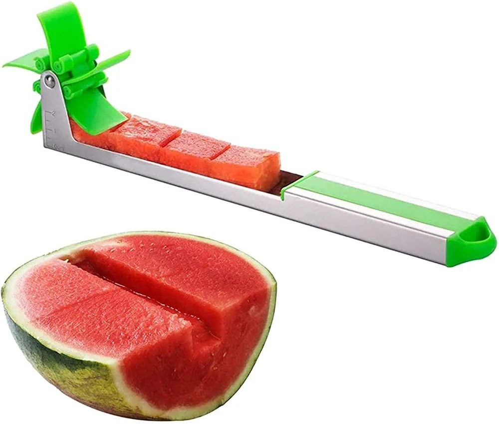 Découvrez l'Autoly Moulin à vent créatif en forme de cube de cantaloup en forme de cube de pastèque (vert), votre compagnon de cuisine ultime pour trancher sans effort la pastèque et le cantaloup. Cet outil innovant dispose d'une lame en acier inoxydable durable et d'un design ergonomique, garantissant des coupes rapides et uniformes. Parfait pour les rassemblements d'été, il facilite le service des fruits frais.