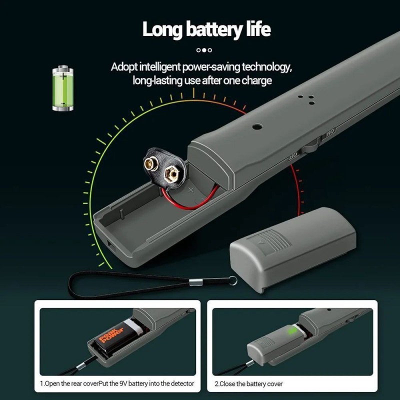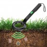 Cet appareil est équipé d'un petit écran LED vert qui indique l'état de la batterie et la préparation opérationnelle. Les boutons de contrôle le long de la poignée vous permettent d'ajuster facilement les niveaux de sensibilité en fonction de vos besoins de détection. Lorsque vous balayez le sol, des signaux visuels indiquent quand du métal est détecté par des bips audibles ou des vibrations.