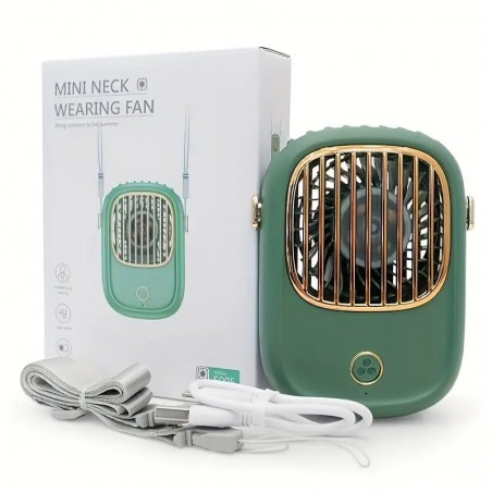 Restez au frais avec style grâce à notre ventilateur mini à porter autour du cou. Conçu pour le confort personnel, ce ventilateur léger présente un élégant corps vert muted et de belles accents dorés. Parfait pour les activités en plein air ou les trajets, il offre un fonctionnement mains libres et un flux d'air efficace. Profitez de la commodité de la charge USB et améliorez votre expérience estivale avec cet accessoire de refroidissement à la mode.