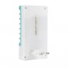 Le corps du radiateur est fabriqué en plastique durable, offrant à la fois robustesse et style. La partie supérieure arbore une couleur turquoise vive qui contraste magnifiquement avec la partie inférieure blanche et épurée. Un interrupteur d'alimentation rouge proéminent en bas améliore non seulement la fonctionnalité mais ajoute également un élément visuel frappant pour un accès rapide.