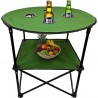 La table dispose d'un plateau circulaire vibrant disponible en plusieurs couleurs, y compris Noir, Rouge, Vert et Bleu. Le tissu résistant aux intempéries ajoute non seulement une touche de couleur, mais rend également le nettoyage facile. Avec des porte-gobelets intégrés tout autour, vous pouvez placer vos boissons en toute sécurité sans vous soucier des éclaboussures, ce qui en fait un choix idéal pour socialiser en plein air.