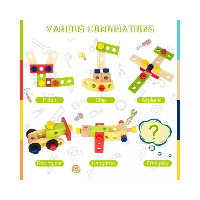 En résumé, Jouets en Bois Boite a Outil Enfant DIY 3D Jeux de Construction offre non seulement du divertissement mais aussi des expériences d'apprentissage précieuses grâce à une interaction pratique. Cette charmante Caisse a Outil Enfant est parfaite pour nourrir la créativité et les capacités de résolution de problèmes chez les jeunes esprits.