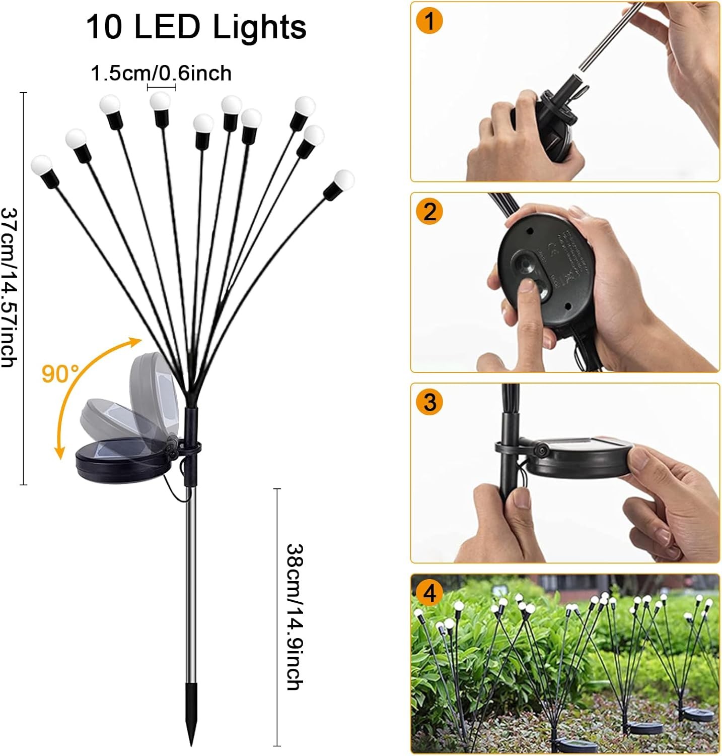 Le design unique comprend plusieurs tiges fines qui se balancent doucement dans la brise, chacune surmontée d'une lumière sphérique qui émet une lueur jaune chaude. Cette illumination délicieuse non seulement rehausse la beauté de votre jardin, mais ajoute également une touche de romantisme aux rassemblements du soir.